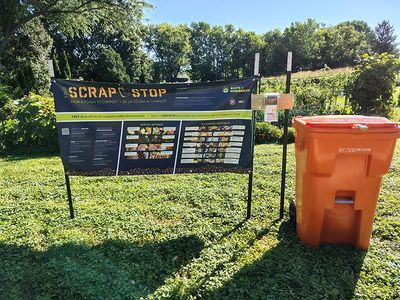Composting areas are located at the west end of the lower garden. We have two orange bins for food scraps and four bins for garden waste. The organic material goes to Purple Cow for composting. Please follow composting instructions posted on the orange bins. We encourage you to compost in your own plot (pit composting). At the end of the garden season, we encourage you to trench compost your organic material or take it home. Do not put garden waste in the woods or prairie.